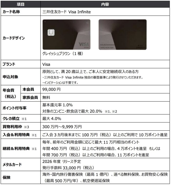 2025年9月30日、ついに三井住友カードから国内初(公式発表)となる最上位ランクのクレジットカード「Visa Infinite」が登場しました。
