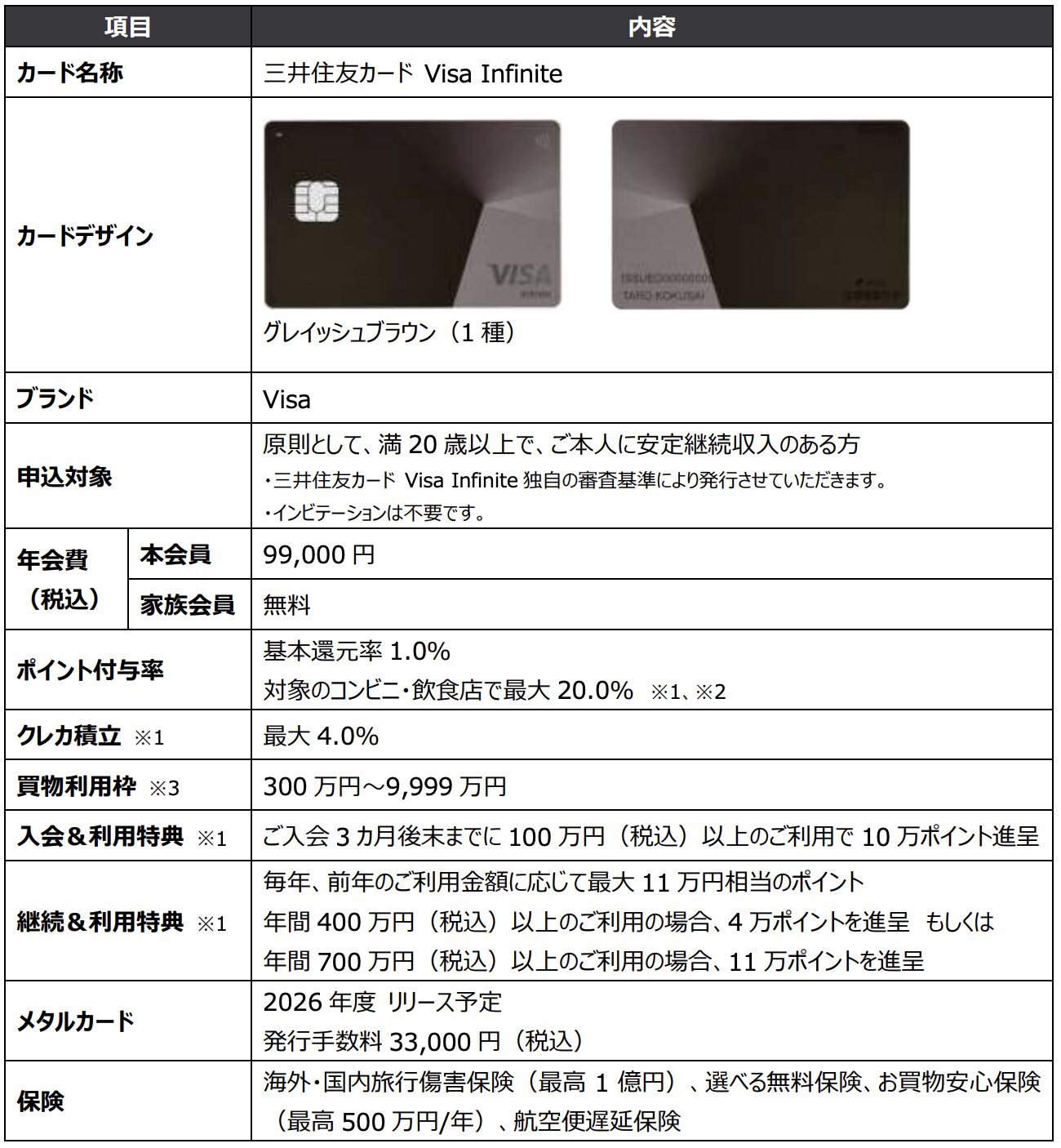 項目 | Visa Infinite | プラチナプリファード | |